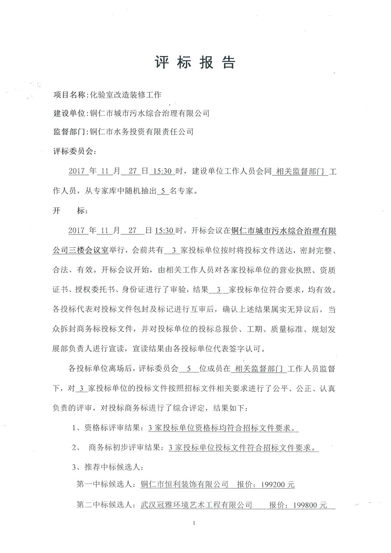 化验室改造装修工作评标报告