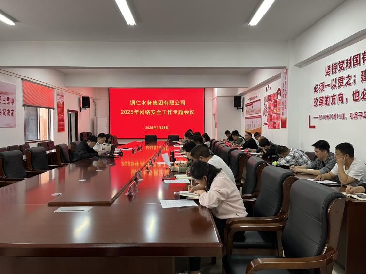 随着互联网技术不断发展,网络安全、网络诈骗、信息泄露等时有发生,为进一步提升我司网络安全防护能力和意识,2025年4月28日上午,铜仁城交集团水务公司组织召开2025年度网络安全工作专题会,会议由水务公司党总支委员、副总经理赵永福主持,各部门负责人、子公司分管领导及负责网络安全工作人员、调度中心全体职工参会。