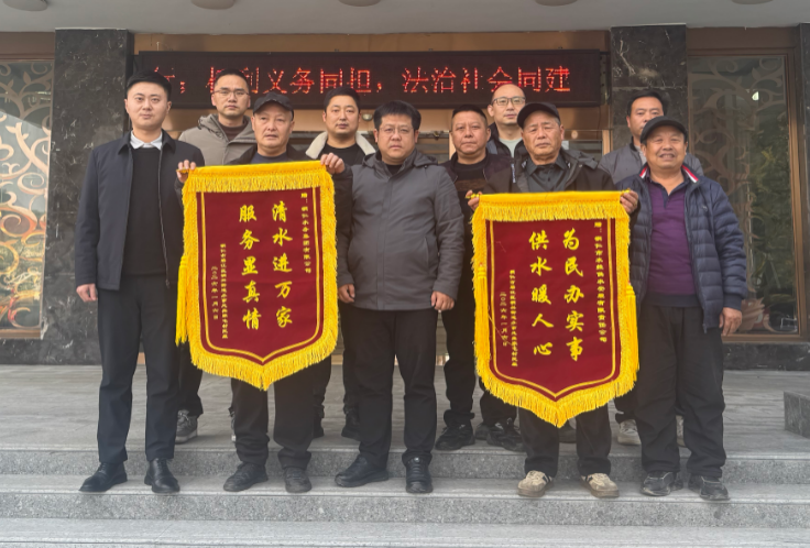 1月6日下午,春节即将来临之际,两面分别印着“清水进万家,服务显真情”“为民办实事,供水暖人心”的鲜红锦旗被铜兴街道办事处熊家屯村民组代表送到了水务公司大厅,字里行间饱含着对我司高效解决熊家屯村民组供水难题的诚挚谢意,也见证了一次以实干践行为民初心的暖心行动。
