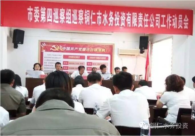 根据市委统一部署,经市委巡察工作领导小组批准,8月25日,市委第四巡察组在市水投公司召开巡察动员会。市委第四巡察组组长刘披星作动员讲话,市监察局派出第三监察分局副局长姚本法到会指导,市水投公司党委书记、董事长冉亚林代表公司作工作情况汇报和述职述廉报告并表态发言。