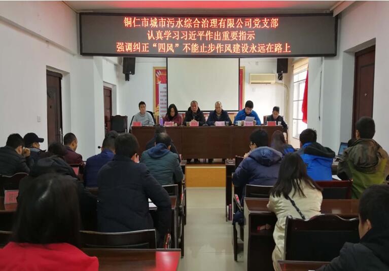 2018年2月8日,市污水治理公司党支部召开全体党员干部职工会议,传达学习有关上级文件精神,安排部署春节期间作风建设工作。市城投集团公司总工程师田毅出席会议并讲话。