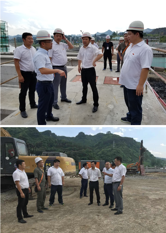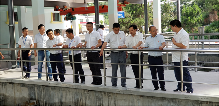 6月29日下午,市城投集团党委书记 董事长张凯、党委副书记 总经理王贵军、党委副书记成军、党委委员 工会主席刘静、党委委员 副总经理陈世新、于大鹏、党委委员 纪委书记田犁等领导一行在市水投公司副总经理舒玉、杨钧、黄宇舟等相关人员的陪同下对两厂提标改造工程进行督导检查。
