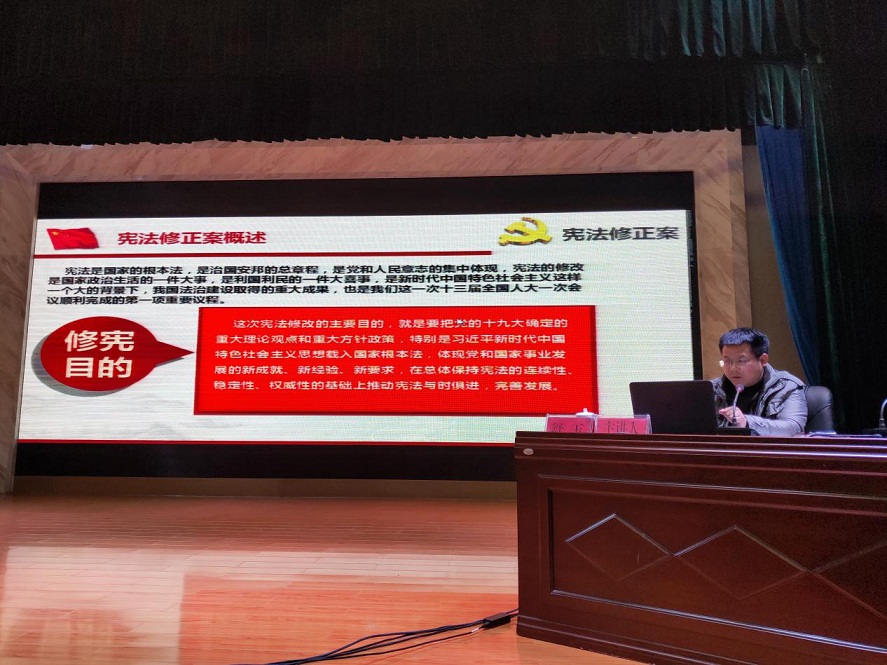 会议集中传达学习习近平总书记在庆祝改革开放40周年大会上的讲话、《中华人民共和国宪法》及习近平总书记在第五个国家宪法日之际作出的重要指示、全国全省宣传思想工作会议、12月13日中共中央政治局会议等精神,《中国共产党支部工作条例(试行)》《关于学习宣传贯彻习近平总书记重要指示精神集中整治形式主义、官僚主义的通知》、意识形态应知应会知识等文件精神。