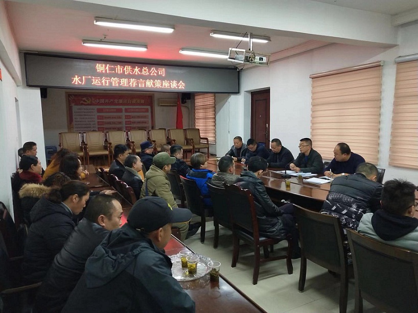 为了更好地倾听一线职工的心声,增强公司的决策力和广大干部职工对公司事务的参与度,供水公司于2018年12月21日召开了“思改革、议创新、促发展”水厂运行管理荐言献策座谈会。会议由水投公司副总经理、供水公司总经理杨钧主持,各水厂管理人员和运行班组长参加会议。