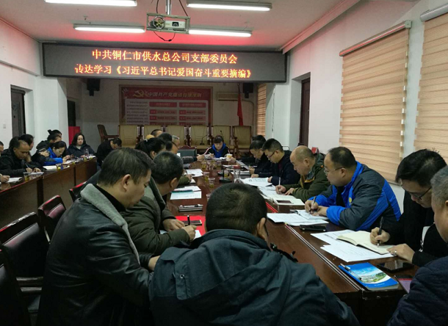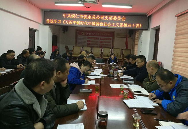 12月29日,供水公司召开专题会议,集中学习贯彻《习近平总书记爱国奋斗重要论述摘编》《习近平新时代中国特色社会主义思想三十讲》(第一讲),传达了市纪委《关于3起形式主义官僚主义典型问题的通报》(铜纪通〔2018〕83号)及集团公司纪委《关于加强2019年元旦春节期间作风建设监督检查工作的通知》(铜城投纪发〔2018〕24号)等文件精神。