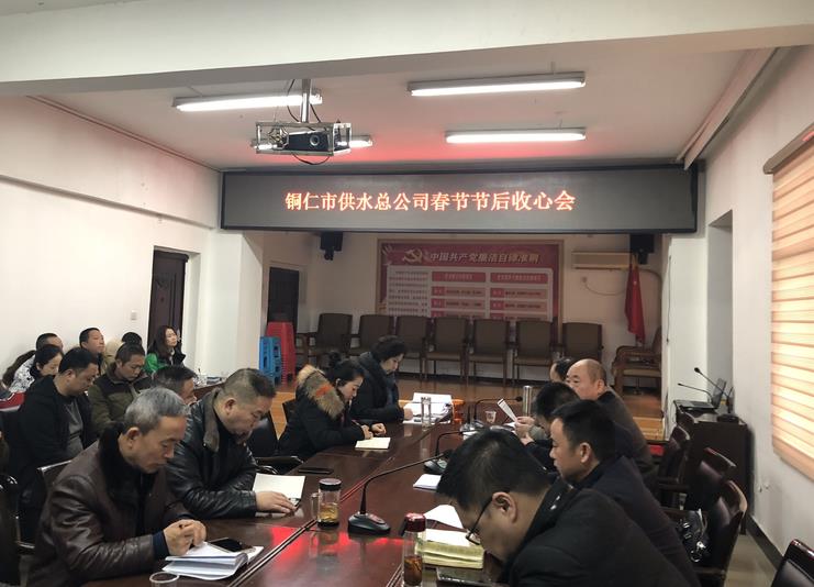 春节长假结束,为使职工更好的从假期中收心进入工作状态,2019年2月18日供水公司总经理杨钧同志主持召开节后收心会,公司全体干部职工参加会议。