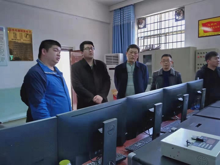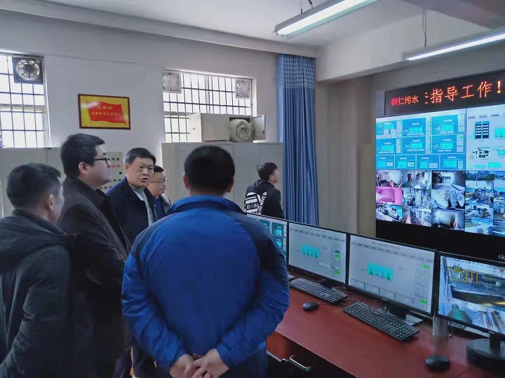 (董事长一行察看污水厂中控室工作情况)