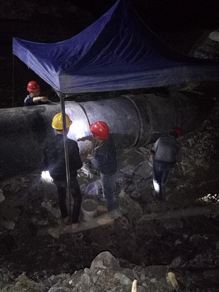 3月29日下午,我司接到鹭鸶岩水厂取水口上移工程宋家坝路段由于山体垮塌造成DN1000mm输水主管破裂的消息,时间就是命令,相关领导和抢修队伍立即赶赴现场分析事故原因和制定应急供水及管道抢修方案。