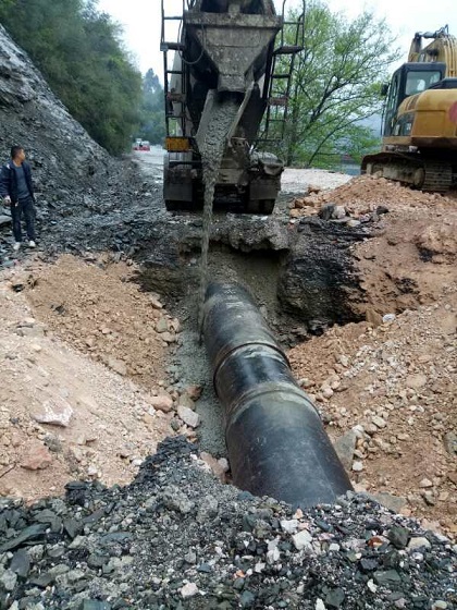 由于宋家坝路段是铜仁至坝黄镇的主要交通输纽,该管道是10万吨/日鹭鸶岩水厂的水源水唯一输水管道,面对保障供水及抢修工作的重重困难和压力,我司一是积极对接交通部门寻求支持和帮助,疏散该路段车辆缓解交通压力,争取到宝贵的抢修时间;二是市城投集团公司陈世新等领导亲临现场指挥抢修工作,鼓舞了抢修人员战胜困难的勇气和信心;三是在抢修过程中抢修人员积极克服时间紧、任务重、雨水多、环境复杂等困难,采取战白天、抢夜间等抢修模式,对上述受损管道进行24小时不间断抢修;四是及时启用了城市管网互联互通供水方案,最大限度提高桐梓坳水厂和大兴尖岩水厂水厂生产量,及时调整供水压力,以保障供水覆盖区域广大市民基本生活用水正常。