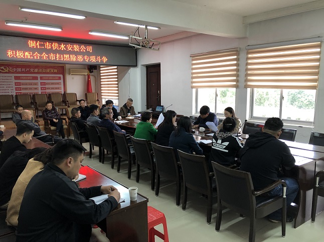 安装公司党支部书记韩军同志指出,一是要提高政治站位,全力配合全市扫黑除恶工作,坚决打赢扫黑除恶的战争;二是要坚决杜绝黑恶势力的滋生,积极揭发检举黑恶线索;三是要进一步树立法治意识,做好宣传工作。