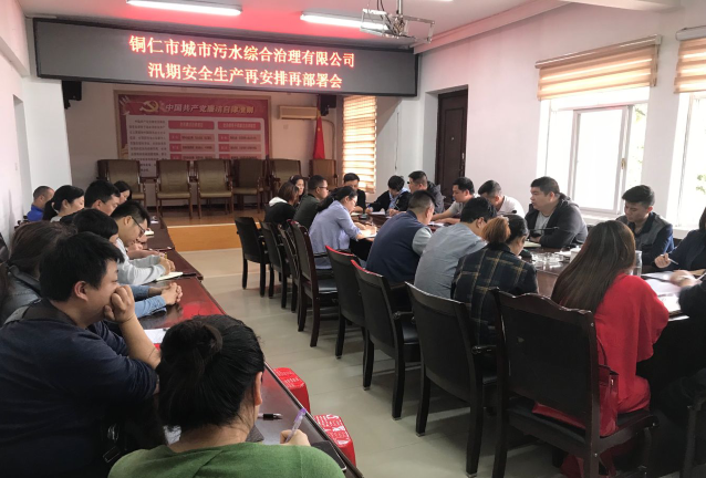 为进一步做好汛期安全生产工作,落实各项防汛措施,2019年4月22日,市水投公司副总经理、污水公司总经理黄宇舟同志主持召开了污水公司汛期安全生产再安排再部署会,污水公司领导班子、各部门负责人、管网维护部及厂部工作人员参会。