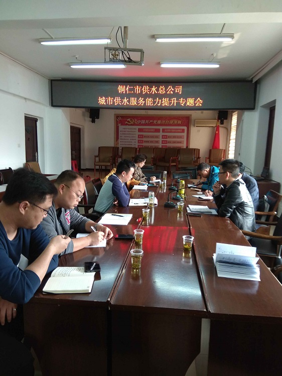 为妥善解决城市供水服务工作短板,持续提升干部职工服务能力,切实保障城市居民用水安全。4月23日上午,铜仁市城市投资开发集团有限公司党委委员、副总经理、市水务投资有限责任公司董事长陈世新主持召开城市供水服务能力提升专题会议,会议首先传达学习了《铜仁市县主城区供水安全保障能力提升三年攻坚实施方案》文件精神,同时对二次供水统建统管、应急供水工程建设、汛期安全供水等工作进行了安排部署。