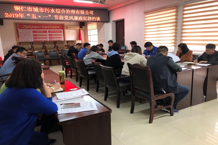 污水公司开展集中学习暨 2019年“五•一”节前党风廉政纪律约谈
