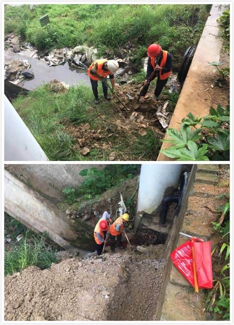 截止目前,牛角湾组已完成沟渠约360米的清理、开挖及沟壁浇筑混泥土工作,现正在接周边散排污水;清水大桥下已完成桥下两侧垃圾及淤泥清理工作,运渣7车,现正在修建雨水箱涵(40米);文笔社区已完成沟渠约120米清理及开挖工作,新敷设DN300波纹管120米,新建检查井7座,现正在接周边散排污水。