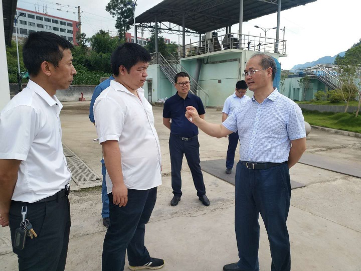 2019年6月5日上午,铜仁市副市长杨同光同志一行到铜仁市灯塔污水处理厂进行调研工作,市水投公司副总经理黄宇舟同志等人陪同。