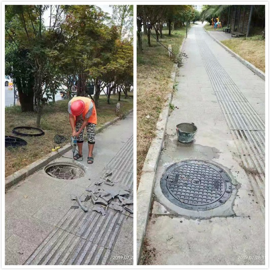 为推进铜仁市创建国家卫生城市相关工作,由铜仁市城市综合执法局牵头,拟对铜仁市城区内的人行道路进行翻修,我司以此为契机,助力加快完成城区内污水管网的修复和改造工作,同时对未被纳入此处翻修范围的污水窨井盖及管网进行排查,发现问题及时整改。