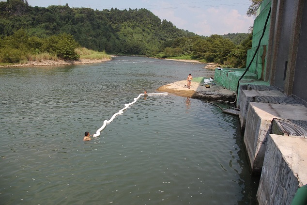 为确保夏季城市供水水质安全, 2019年8月15日,供水总公司及时组织人力对龙井取水口河面受损的拦油绳进行了及时更换。