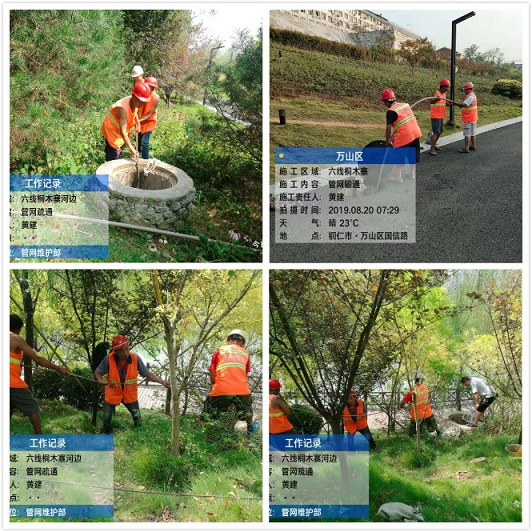 根据市委、市政府关于创卫工作总体部署推进,市城投集团高度重视,切实把创卫工作纳入重点工作安排。2019年8月第4周,我司共实施以下创卫工作内容:一是疏通堵塞污水管网7处,分别是江华国际人行道段、运输公司河边段、桐木寨河边段、江中门至中南门段、世纪公园至农校大沟段、南溪谷地段、体育馆河边段。共计疏通约3.5公里,运渣7车。;二是清理堵塞窨井3处,分别是仁爱眼科医院段、环保局河边段、高新区光智南路段。共计清理堵塞窨井19座,运渣2车;三是更换改造百花路、黄家院子、河边公园段窨井7套;四是维修9处供水管网漏点,更换阀门2处、供水窨井盖1处,分别是柳杨村、喻家坪、锅厂农贸公司斜对面、工行对面地下、东关煤厂、道坳上古城门口、格林公馆、柑子园等路段。