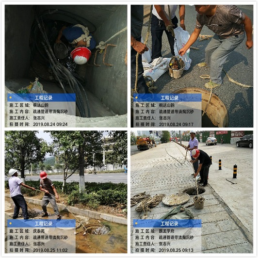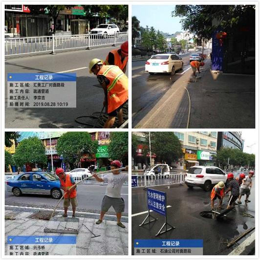 根据市委、市政府关于创卫工作总体部署推进,市城投集团高度重视,切实把创卫工作纳入重点工作安排。2019年8月第5周,我司共实施以下创卫工作内容:一是疏通堵塞污水管网7处,分别是万和星城至邱家寨河边段、金鳞半岛河边段、兴市桥至石油公司段、锦江南路段、外滩一号段、桐达山韵至麒龙学府段、中南门段。共计疏通约4.6公里,运渣6车;二是清理时代商汇红绿灯处检查井6座、高新区聚智南路堵塞窨井13座,共计运渣2车;三是更换改造百花路、啤酒厂段、兴市桥、体育馆对面、江中门、熊家屯加油站旁等窨井9座;四是锦江御都泄洪口治理污水渗漏,共计敷设污水管2米,新装2个井盖,修复盖板10个,运渣1车;五是完成笑哈哈建材市场桥下污水检查井补漏工作,共计修补1座污水检查井;六是维修3处漏水点,2处消防栓,分别为高新区DN110mm主水管、馨竹园DN40mm管、格林公馆DN32mm管、万山河坪安置房对面站台旁消防栓、大兴桃树湾消防栓等;七是对高新区及灯塔片区的水压进行巡查和调试。