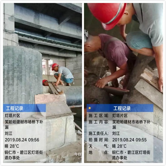 (笑哈哈建材市场桥下对污水检查井补漏)