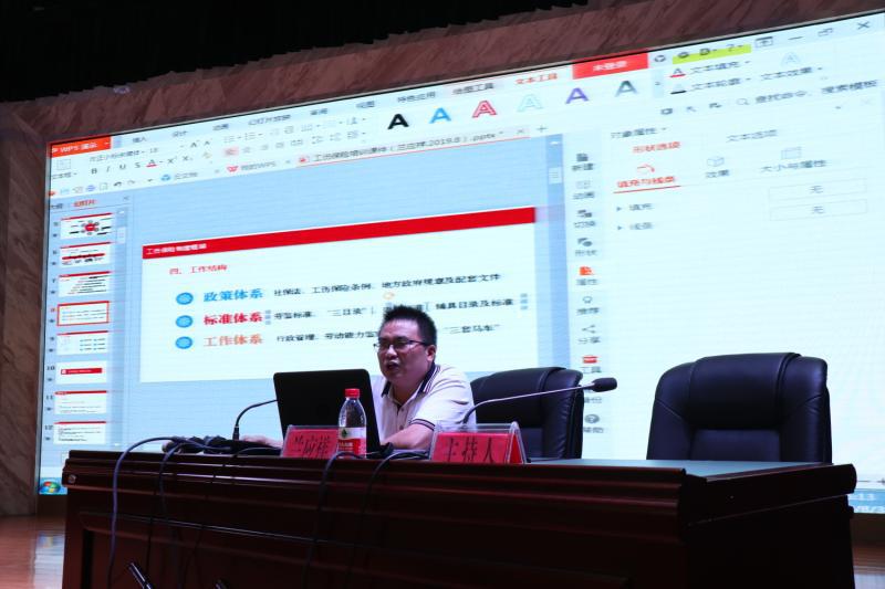 为进一步提高我司社会保险业务经办人员的业务水平,熟悉社保缴费基数申报、人员增减变动、社会保险关系转移等业务的办事流程,更好地为公司职工服务,同时也为使广大职工对社保相关业务规定和政策有更深入的了解。2019年8月30日,我司在一楼大礼堂组织召开了养老保险及工伤保险知识培训会。此次培训会特别邀请了铜仁市人力资源和社会保障局工伤保险科科长兰应祥、碧江区人力资源和社会保障局养老保险科科长舒乔等相关工作负责同志,分别就工伤保险、养老保险及工龄认定等方面业务知识进行了专题培训。市水投公司副总经理安彩环同志主持会议,市水投公司在家班子成员出席培训会,各子公司负责社会保险相关工作的经办人员及部分职工近百人参加了培训。