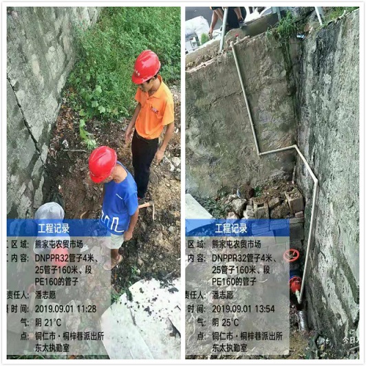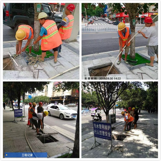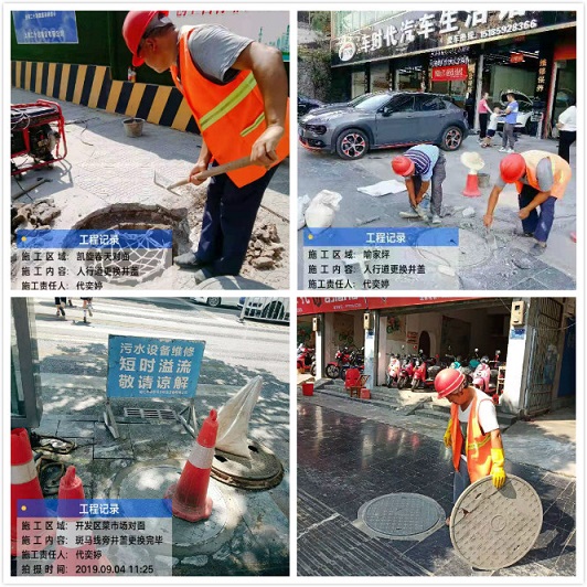 根据市委、市政府关于创卫工作总体部署推进,市城投集团高度重视,切实把创卫工作纳入重点工作安排。2019年9月第1周,我司共实施以下创卫工作内容:一是疏通堵塞污水管网3处,分别是万山产业园至移动公司对面河边段、锦江国际至河滨公园段、锦江南路段。共计疏通约1.7公里,运渣2车;二是清理堵塞窨井3处,分别是灯塔小学段、梵净山大道段、灯塔红旗4S店门口段,共计清理堵塞窨井36座,运渣2车;三是更换改造喻家坪公交站对面、开发区菜市场段、凯旋春天对面人行道、凉湾门前、协和医院段等窨井9座;四是协助河西办事处清理八完小旁排水沟,共计清淤约30米,修复盖板6块,运渣1车;五是正在对新华大沟渗水进行治理,新建收集池1座;六是维修8处漏水点,分别为地王广场DN 50mm管、万丰国际商贸城DN32mm管、老中医院背后水电局宿舍DN63mm管、河西派出所DN32mm管、万山廉租房DN63mm管、清水花苑小区DN32mm管、邮政储蓄银行东太大道营业厅DN32mm管、锦江北路源丰商务酒店DN50mm管;七是更换老旧闸阀3处,分别为熊家屯消毒公司DN150mm法兰蝶阀、禄福宫DN32mm截止阀5个、熊家屯DN160mm阀;八是修建熊家屯消毒公司闸门井一座。