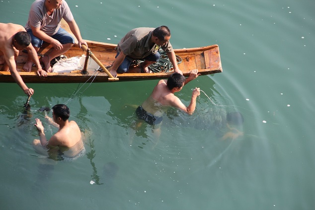 本次清理过程中,抢险人员相互配合,积极克服河水较深较冷且乱流较多的不利环境,潜入水底摸索找到莲蓬头的水下位置,对其进行捆绑,通过临时设置固定桩,用紧线钳一点点地拉出水面后逐步清理,再用高压水柱对吸水管进行冲洗,最后用防护网修补受损的莲蓬头。同时取水泵房机坑内也在紧锣密鼓地对吸水管进行配合清理,直到清理完成。