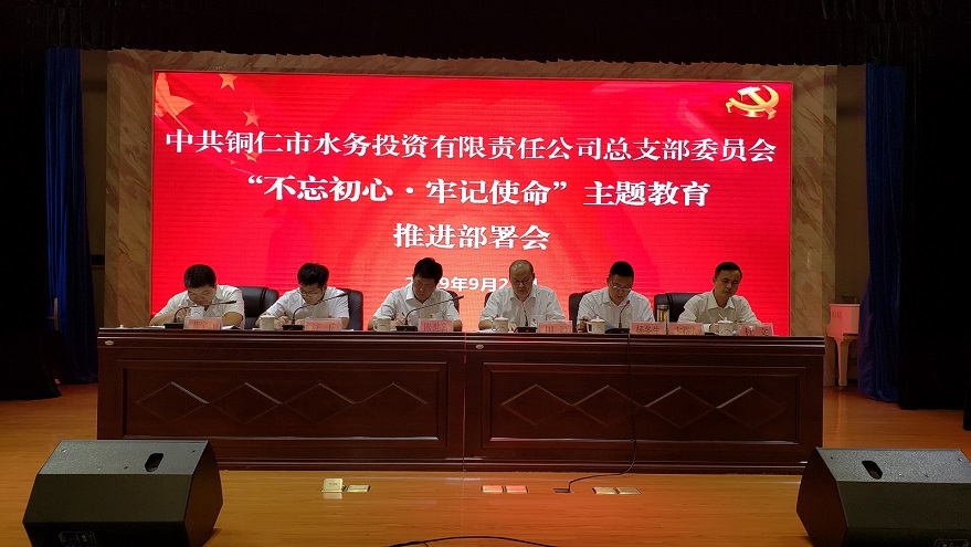 会议分两个阶段进行,第一阶段集中学习了中央、省委、市委以及集团公司党委“不忘初心・牢记使命”主题教育相关文件精神,宣读了《关于成立铜仁市水务投资有限责任公司“不忘初心・牢记使命”主题教育领导小组的通知》《铜仁市水务投资有限责任公司开展“不忘初心・牢记使命”主题教育实施方案》,市城投集团公司党委委员、副总经理、市水投公司董事长陈世新同志作重要讲话。