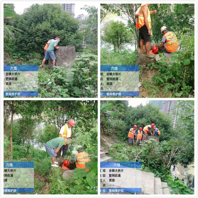 根据市委、市政府关于创卫工作总体部署推进,市城投集团高度重视,切实把创卫工作纳入重点工作安排。2019年9月第3周,我司共实施以下创卫工作内容:一是疏通堵塞污水管网3处,分别是民族风情园段、九洲医院桥边至金鳞大桥段、川硐职院段,共计疏通约1.4公里,运渣2车;二是清理堵塞窨井6处,分别是格落坡段、民族风情园公厕旁、凉湾段、高新区聚智南路段、百花路段、上龙田至睿力国际段,共计清理堵塞窨井68座,运渣6车;三是更换改造梵净山大道、曹家园路口段、东关片区窨井4套;四是协助河西办事处清理河滨公园对面垃圾,运渣4车;五是在巡查过程中发现锦江御都东门桥、高新区廉租房、一完小、邮政局宿舍、大江坪新路口旁边5处漏水点,维修人员及时的进行了维修和更换;六是在排查安全隐患工作中发现喻家坪消防栓漏水、瑜龙世家井盖损坏、井内有垃圾,维修人员及时进行了更换、维修和清理;七是瑜龙世家修建闸阀井一座、安装闸门2个;八是对灯塔4号路片区、川硐怡馨苑片区、铜仁学院片区、龙田廉租房片区、川硐学院片区等5个片区进行减压阀调试。