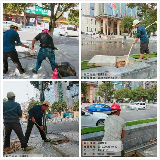 根据市委、市政府关于创卫工作总体部署推进,市城投集团高度重视,切实把创卫工作纳入重点工作安排。2019年9月第4周,我司共实施以下创卫工作内容:一是疏通堵塞污水管网4处,分别是民族风情园段、格落坡至爱国路段、麒龙国际会展城至人民医院段、河滨公园段。共计疏通约1.7公里,运渣2车;二是清理堵塞沉砂池2座,清理堵塞窨井4处,分别是环保局后门河边至移动公司对面河边段、凉湾段、仁爱眼科医院后河边段、铜兴大道,共计清理堵塞窨井162座,运渣8车;三是完成锦江御都检查井补漏工作,共计修补1座检查井;四是协助河西办事处对锦江北路阳光图文广告旁明沟治理工作,共计清淤约25米,敷设污水管约25米;五是维修、更换漏水阀门8处,分别是碧江区第一商业大道、东方花园、碧江区花果山南路、联通小区、人民检察院、滨江大道水果市场、曼谷海人行道上、谢桥电信公司门口;六是更换楚溪桥头消防栓、睿力消防大队井盖2处;七是川硐政务中心新增设一个供水缴费窗口。