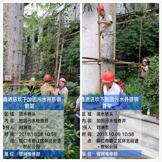 (清水桥头对污水检查井进行补漏工作)