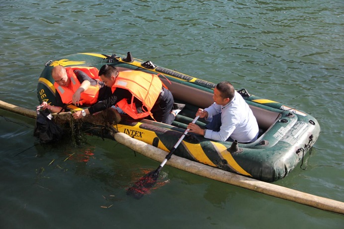 在整治行动中,党员志愿者们对直接关系到人民群众饮水安全的城市饮用水源及周边环境进行了彻底整治:一是对鹭鸶岩水厂坝黄龙井泵站取水口的拦油绳及进水口漂浮的白色垃圾和杂物进行了定点清除;二是对取水口周边河段的垃圾进行了全面清理。