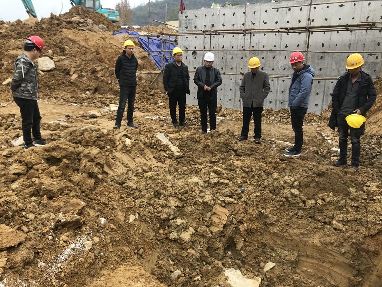 2019年12月12日上午,我司会同碧江区质监站与项目设计、地勘、监理等参建单位对铜仁市鹭鸶岩水厂技改工程污水脱泥机房基坑开挖进行现场验收工作。