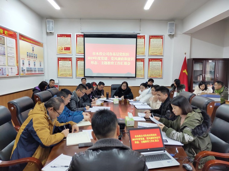 12月25日,市城投集团公司检查组王健同志一行到水投公司检查指导五个基层党组织2019年度党建、党风廉政建设和意识形态及主题教育工作。市水投公司党总支副书记杨冬生,水投公司党总支委员、副总经理、供水公司党支部书记、总经理杨钧出席,各党支部支委班子成员及党务工作人员参加。