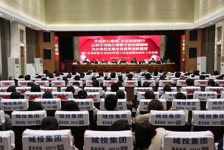 为全面总结2019年度工作,积极引导公司干部职工准确把握新形势、新目标,切实推动2020年度各项工作再上新台阶,2020年1月16日,我司2019年度工作总结暨2020年工作安排部署会在公司一楼大礼堂顺利召开。会议由市水投公司党总支副书记、总经理舒玉主持,市城投集团公司党委副书记成军、市城投集团公司党委委员、副总经理、市水投公司党总支书记、董事长陈世新、市城投集团公司党委委员、纪委书记田犁、总工程师田毅出席会议并讲话,市水务局副调研员王骏骊应邀出席会议,公司党政工班子、司属各部门、子公司干部职工及退休职工代表近300人参加会议。