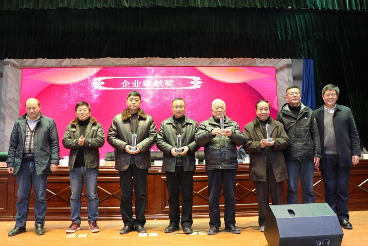 (市城投集团公司党委副书记成军,党委委员、副总经理陈世新,纪委书记田犁、总工程师田毅为企业奉献奖获得者颁奖)