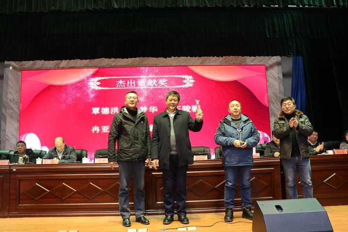 (市城投集团公司党委副书记成军、纪委书记田犁为杰出贡献奖获得者颁奖)