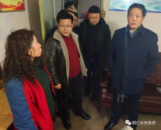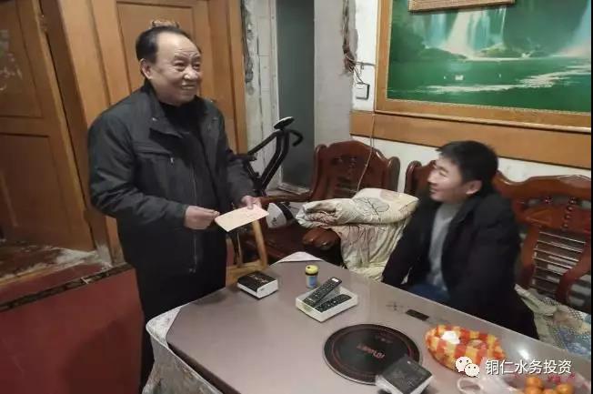 新春将至,岁寒情深。2020年1月21日至23日,受市城投集团公司党委书记、董事长郎韬、党委副书记、总经理王贵军同志委托,由市城投集团公司党委委员、副总经理、市水投公司董事长陈世新,市城投集团公司党委委员、副总经理王健,市城投集团公司党委委员、纪委书记田犁,市城投集团公司副总经理何勇、总工程师田毅分别带队,率市水投公司党政工班子及相关人员一行前往袁家寺骨科医院、花果山老干部宿舍、枇杷湾、老年大学、金滩等地,以及到大兴尖岩水厂、鹭鸶岩水厂、桐梓坳水厂、漩水湾污水处理厂、灯塔污水处理厂、农校泵站、三寨泵站等供排水生产一线,走访、看望慰问公司退休老领导、军转干部、退伍伤残军人、重病困难党员、重病困难职工、长期重病卧床的退休职工及春节期间坚守一线的职工,为他们送上爱心慰问品和新春祝福。