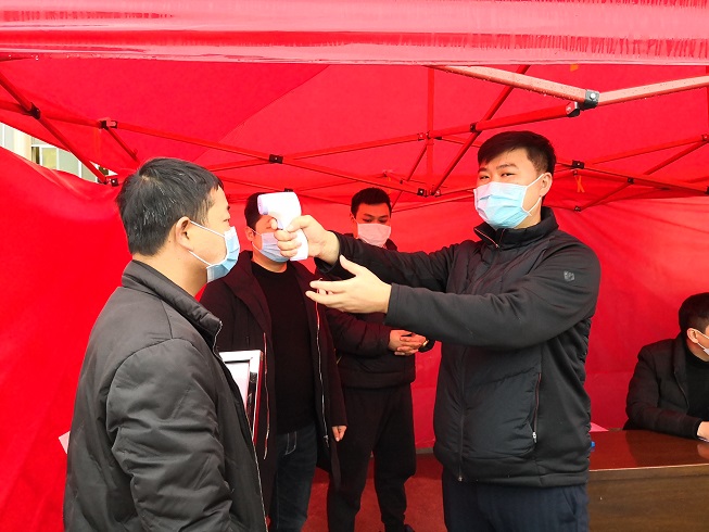 (开展职工体温检测、厂区消毒、等防控工作)