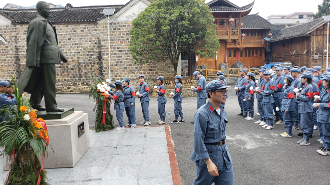 穿岁月峰头,伴历史云烟,诵红色经典,抒爱国情怀。市城投集团公司团委为迎接2020年“五四”青年节的到来,4月30日组织开展了“不忘历史•牢记初心”红色传统教育实践活动,市水投公司团支部组织20余名团干团员积极参加。活动在集团公司团委的统筹安排下有序进行,全体团员近百人统一身着红军装在金滩南长城酒店门口整队,集团公司团委书记龙芳出席并致开幕辞,在举行授军旗、共青团旗等仪式后,依次乘车前往欧百川故居开展红色传统教育。