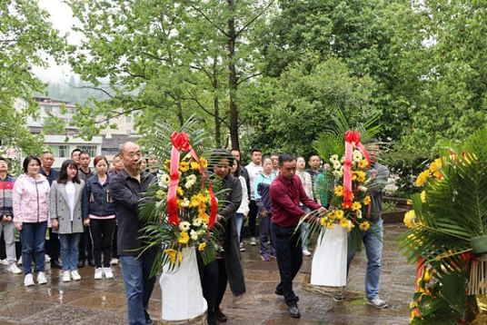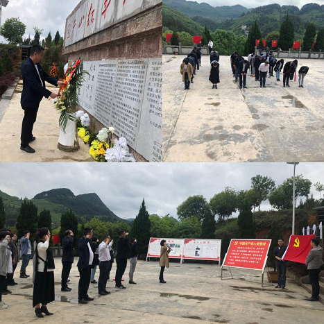 在枫香溪会议会址,全体党员干部瞻仰了革命英雄纪念碑,向英雄纪念碑敬献了花篮,并在纪念碑前重温入党誓词,“我志愿加入中国共产党,拥护党的纲领……随时准备为党和人民牺牲一切,永不叛党。”沐浴在绵绵细雨中,全体党员在纪念碑前面对党旗庄严宣誓,在铮铮誓言中感受来自心灵的洗礼。