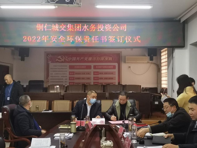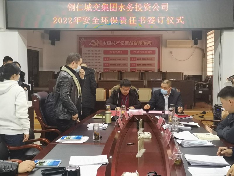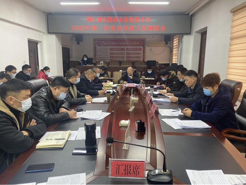 2022年1月11日上午,铜仁城交集团水务投资公司召开2022年第一次安全环保工作调度会,会议由公司党总支书记、董事长田毅主持。党总支副书记、董事、总经理舒玉及公司在家领导班子出席,各部门负责人、子公司安全环保分管负责人参会。会议全面总结了2021年安全环保工作,暨对2022年安全环保工作进行了具体部署。