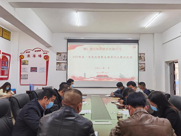 2022年3月30日,铜仁城交集团水务投资公司所属供水安装公司党支部组织开展第一季度廉政党课,支部书记韩军同志以《严守职业底线,永葆清正廉洁》为主题上廉政党课,水投公司副总经理、安装公司总经理丁朝刚同志列席会议,支部全体党员、发展对象参加会议。
