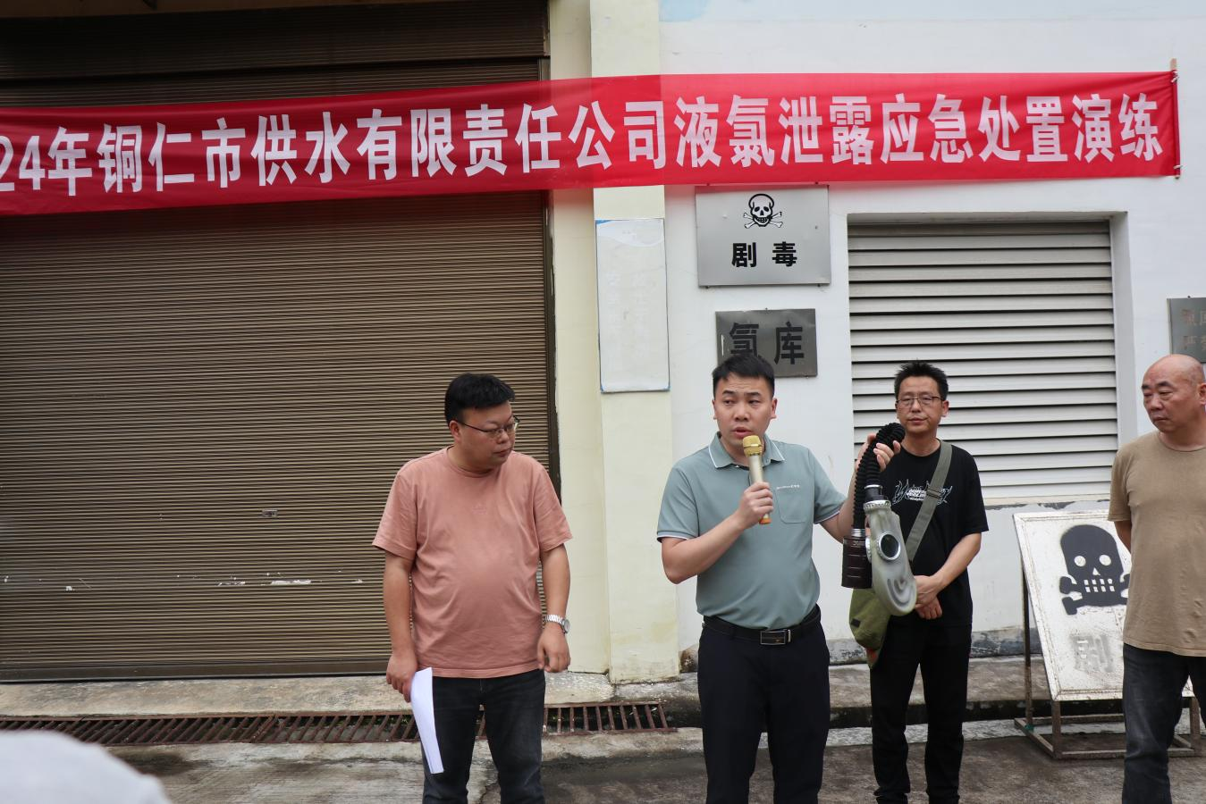 为进一步检验突发事件应急处置能力,充分做好氯气泄漏应急处置防范措施。2024年6月27日,供水公司在鹭鸶岩水厂组织开展了氯气泄漏应急演练。公司领导班子出席并观摩演练。各部门负责人、各厂正副厂长、生产技术部及鹭鸶岩水厂全体职工参加演练。